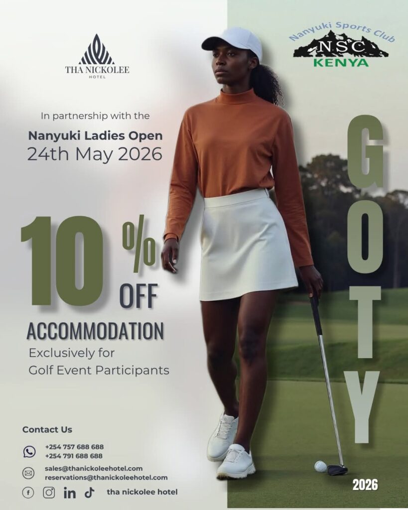 Tha Nickolee Hotel blends convenience with style, giving you the perfect balance between performance and leisure.This is your chance to focus fully on your game while enjoying a premium stay tailored just for you. Don’t miss out on this exclusive offer—book your accommodation today and make your Nanyuki Ladies Open experience truly unforgettable.Book now: www.thanickoleehotel.comCall/WhatsApp: +254 757 688 688#NanyukiLadiesOpen #GolfKenya #ThaNickoleeHotel #GolfStay #NanyukiEvents #SportsTourism #GolfLife #StayInComfort #KenyaGolf #HotelDeals